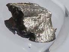 Pure iridium metal is not attacked by acids or acid mixtures, not even by aqua regia, which dissolves gold. Fluorine and chlorine attack it only at a red heat. It is oxidized slowly at high temperatures. It resists attack by fused bases and by most molten metals. Iridium was discovered in 1804 by Smithson Tennant; it is so named because of its various highly colored salts.
